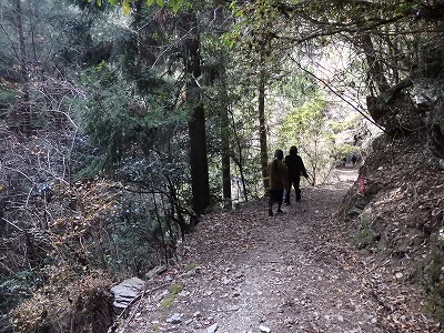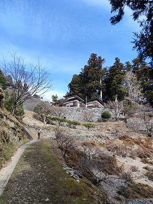 青石と紅簾片岩のピンクの石段を登っていく。