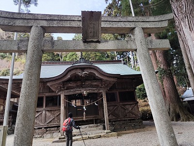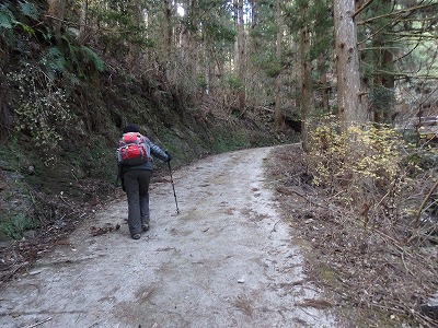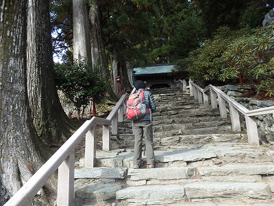 参道の舗装路を少し登ると、心配していた股関節が痛みだした。