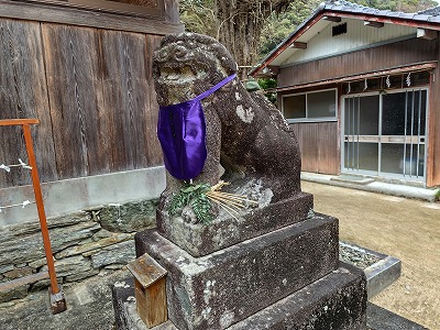 古いタイプの狛犬が出迎えてくれる。