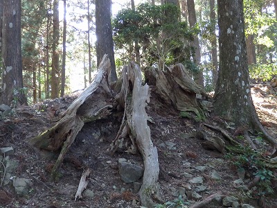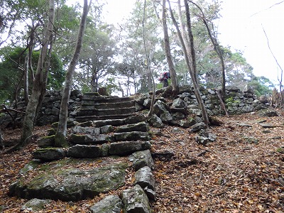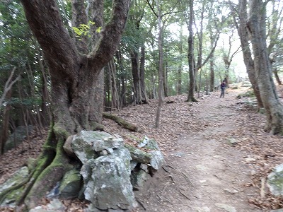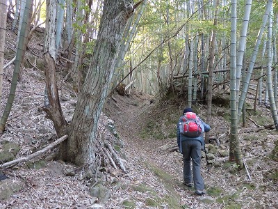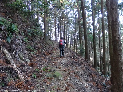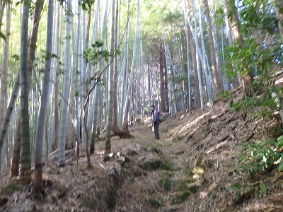 帯状の道は自然の尾根道ではなくて、盛り土で作られた道。