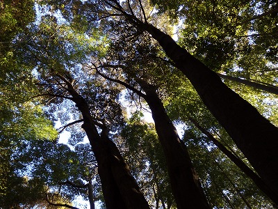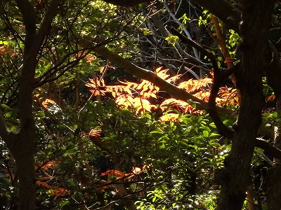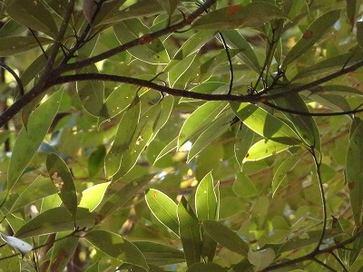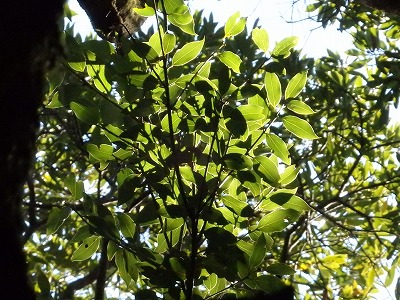 常緑樹の葉も陽の光に透かすと綺麗だ。