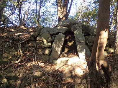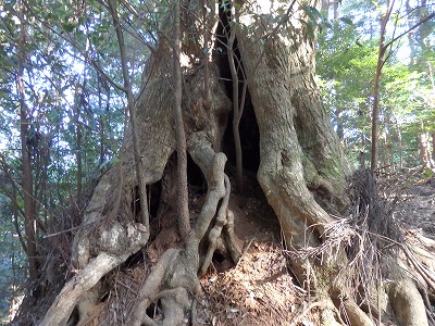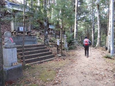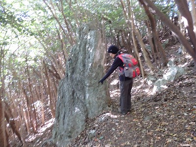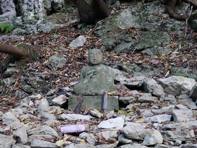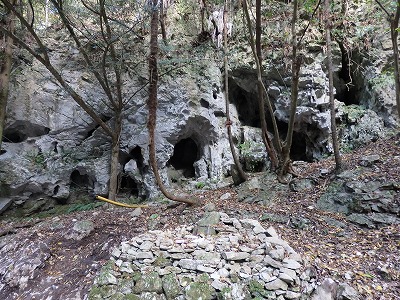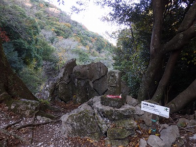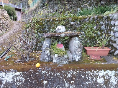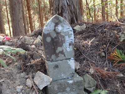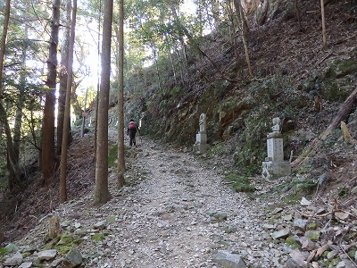 昔、観音像が祀られていた石室が残っている古道を歩く。