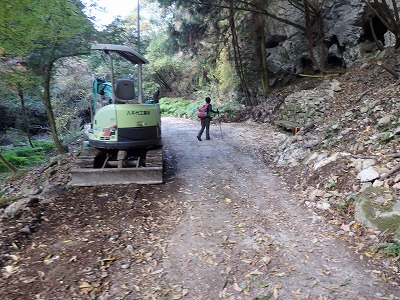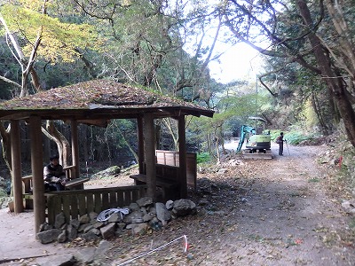 若杉山遺跡の東屋に着くと道路の拡張工事が終わっていた。