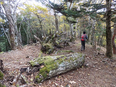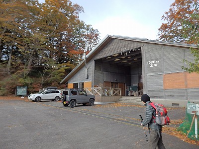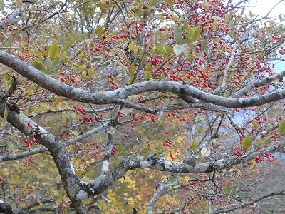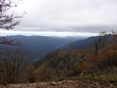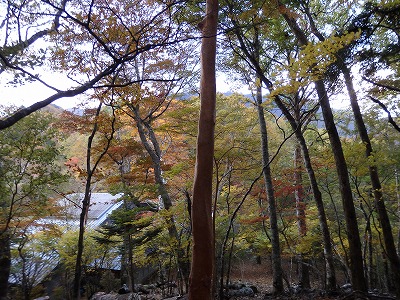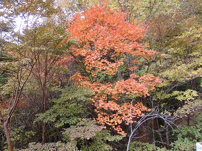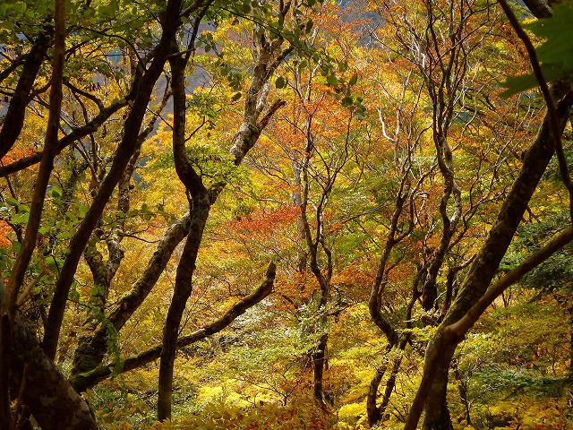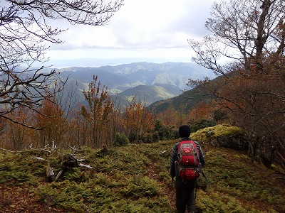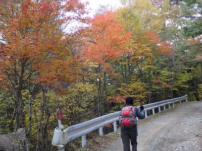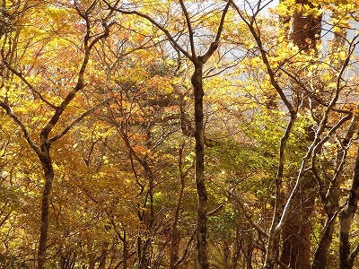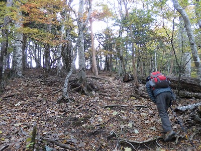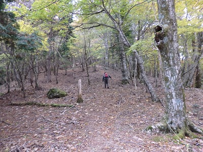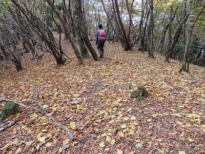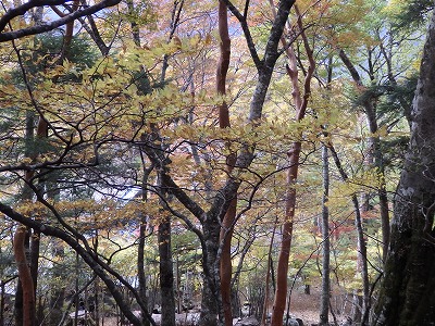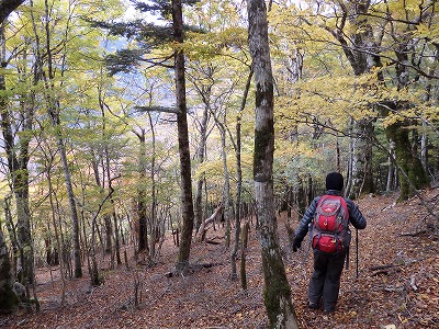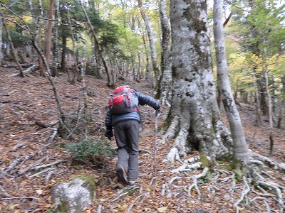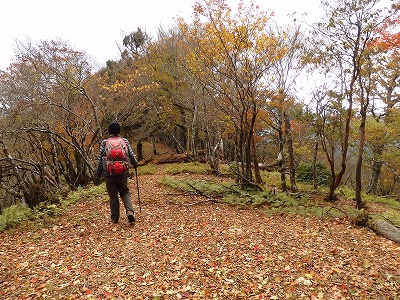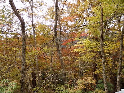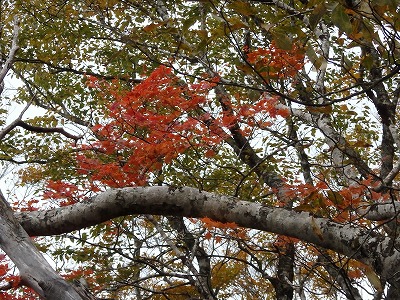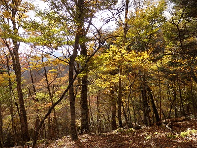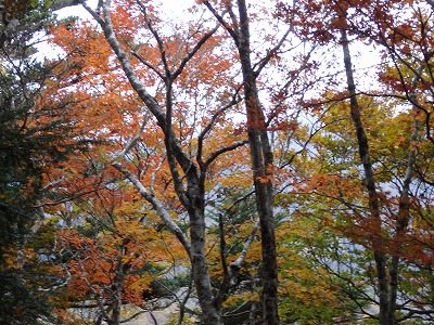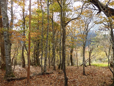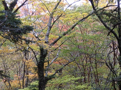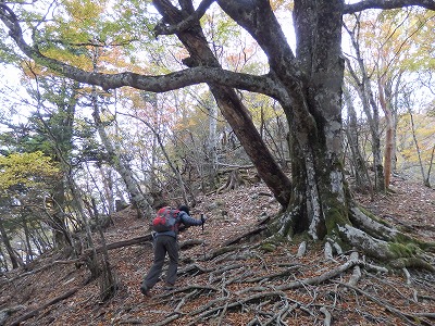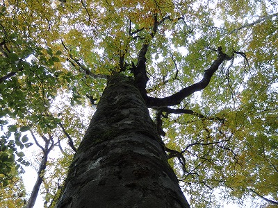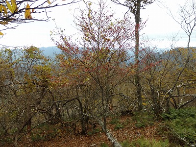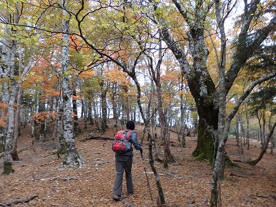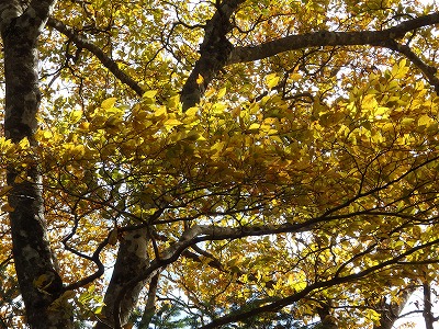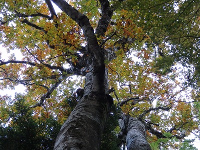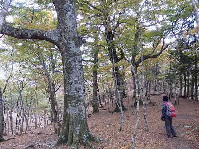 ブナの大樹が紅葉し始めているが、曇り空なのが残念だ。