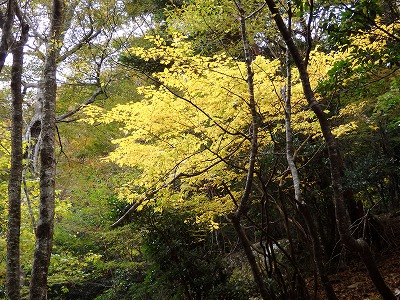 ウリカエデの黄色い落ち葉が綺麗だ。